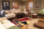 Two mismatched rugs. Two sofas, one of which is a giant sectional. Broken blind. TV trays. A completely unnecessary screen. A super-uncomfortable chair that I bet you didn't even notice among everything else. The white blankets on the furniture are pet protection, FYI.